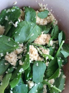 Spicy chicken thighs with spinach couscous.