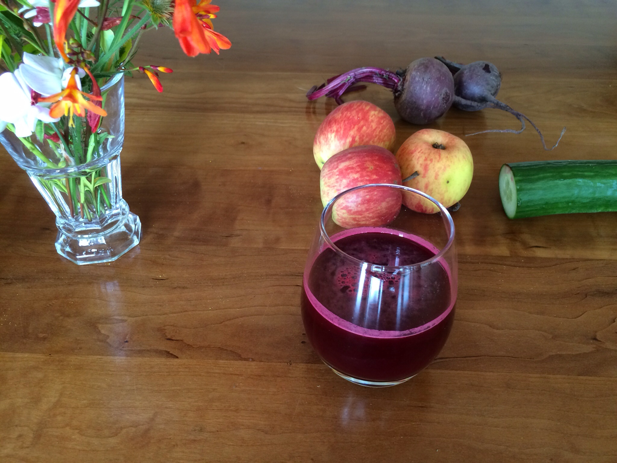 Juice half a cucumber, 2 beetroot, 2 apples.