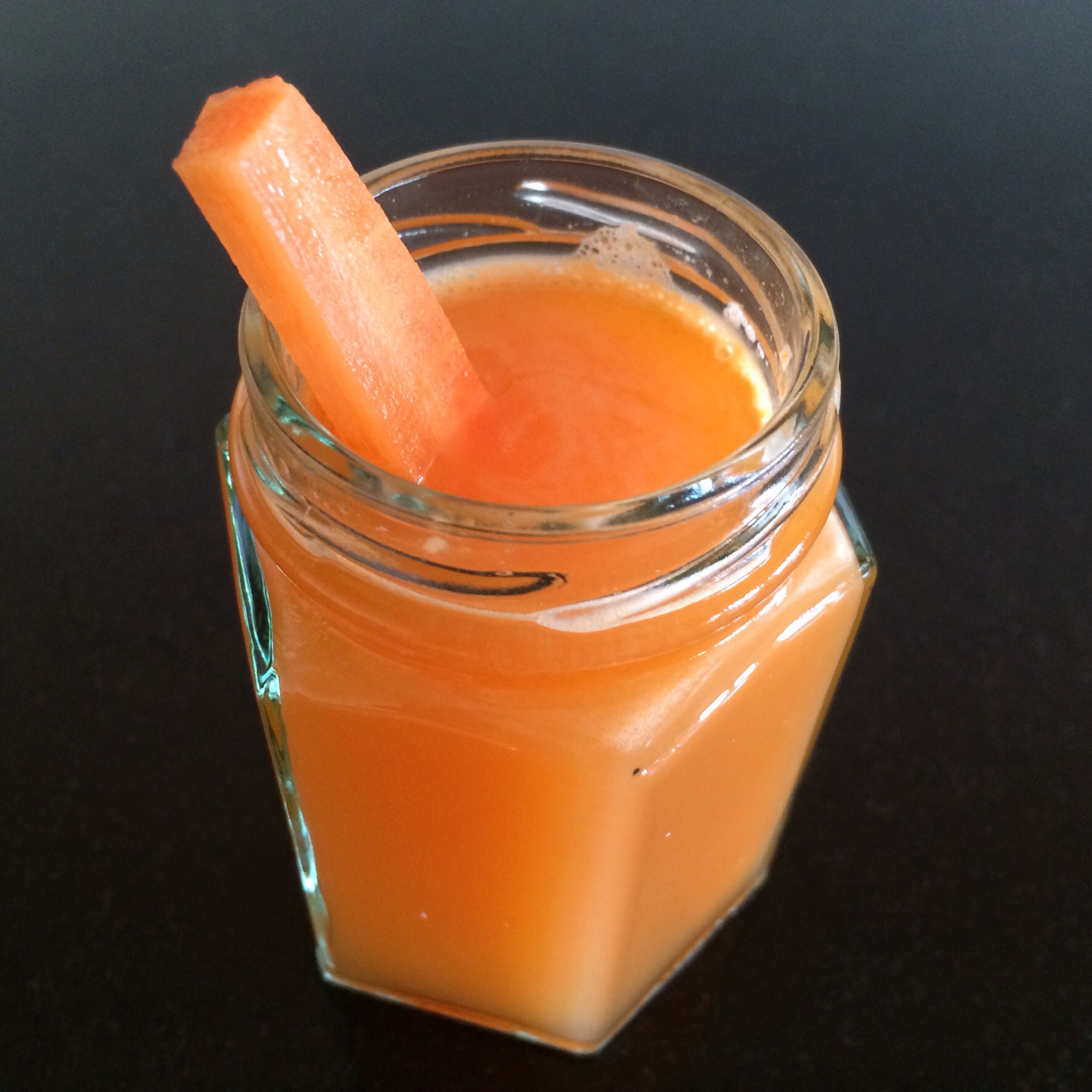 Juice 2 medium carrots, 1 medium apple, 1″ peeled fresh ginger.