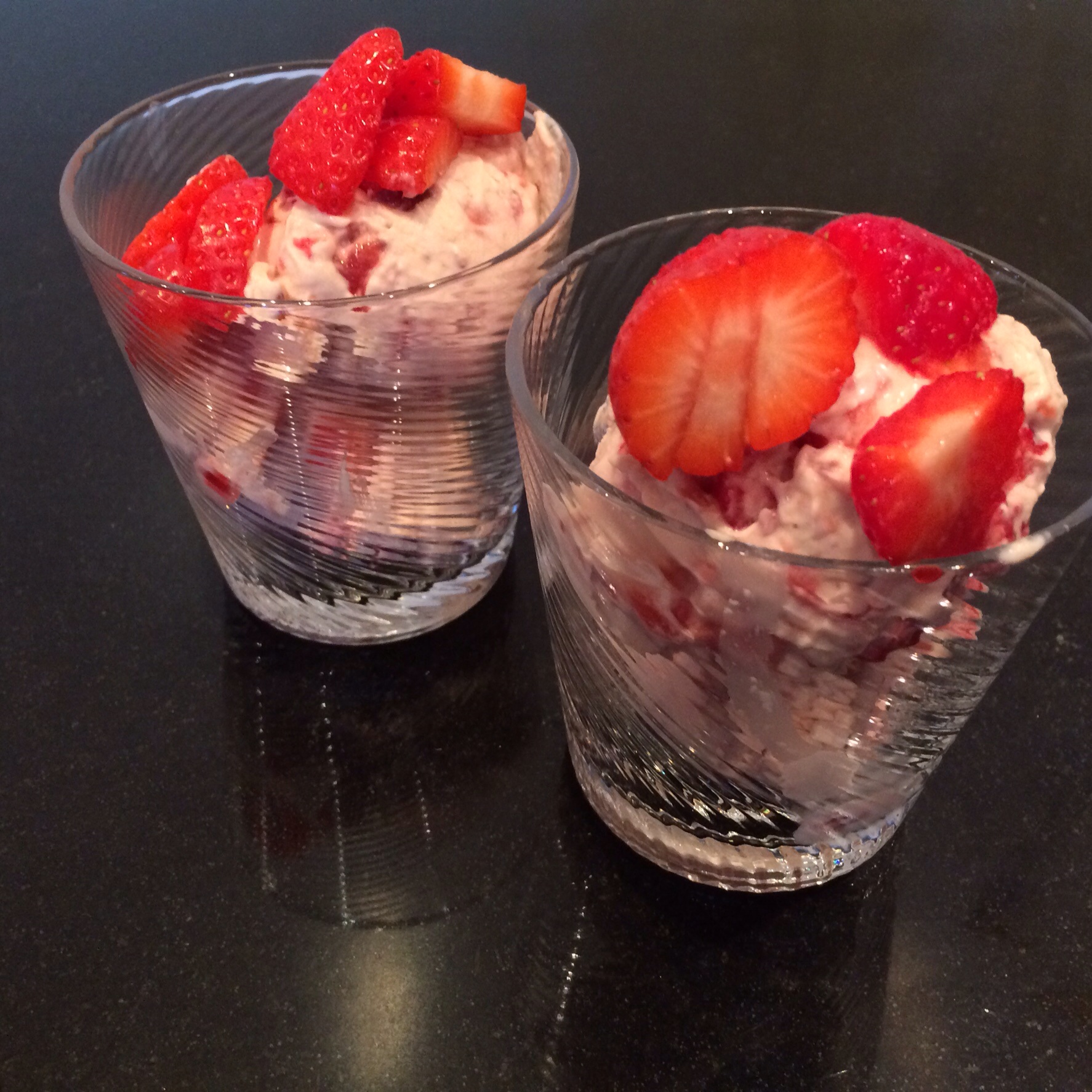 Oh so simple and so tasty. The perfect quick dessert for a sweet English treat. Glorious strawberry ice cream with fresh English strawberries.