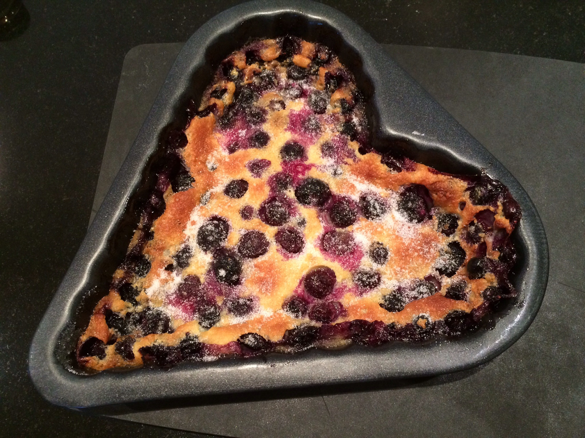 Something warm and delicious on a cold evening, a clafoutis with sweet blueberries.