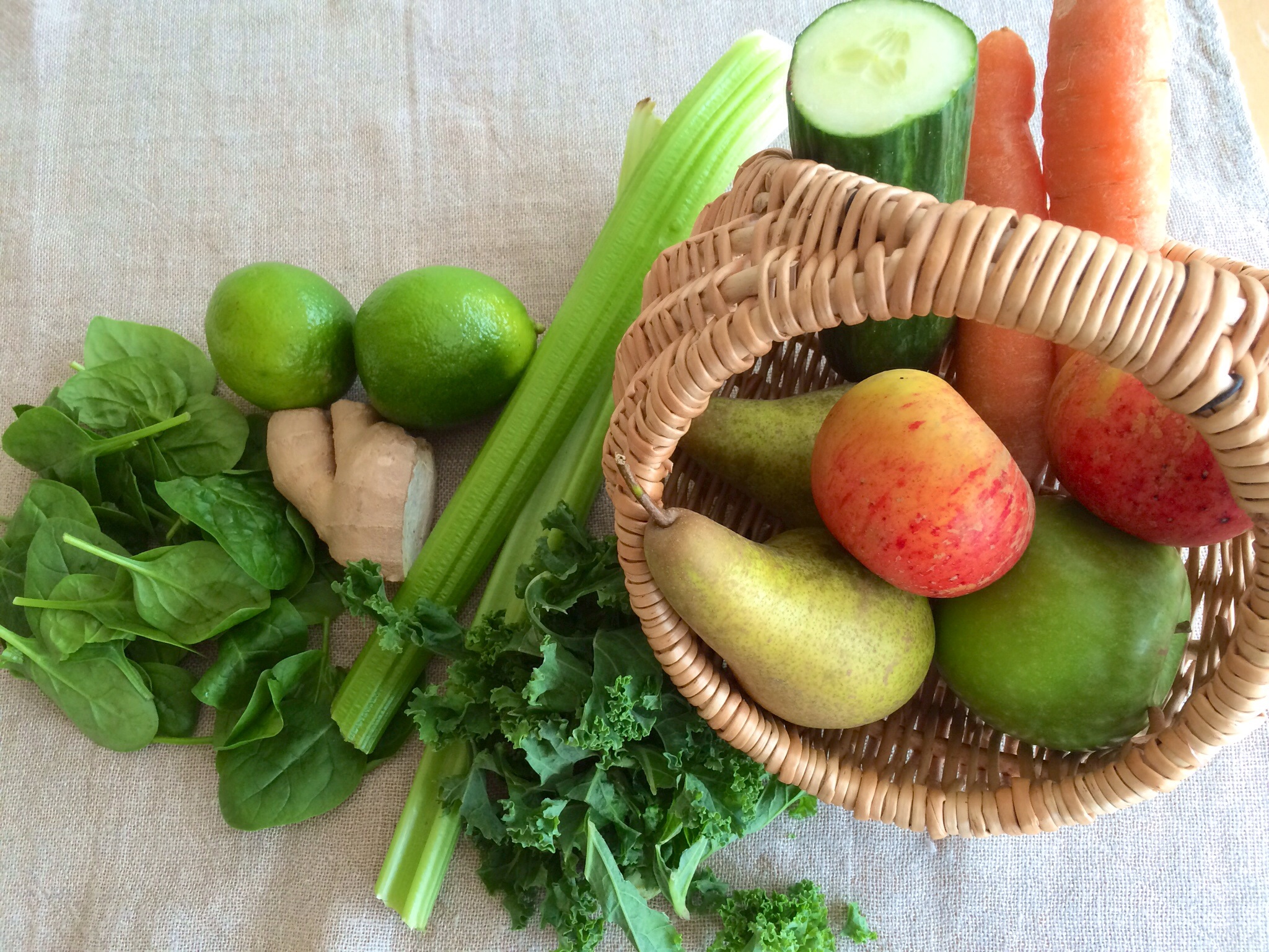 As part of my eat clean month I’m juicing fruit from the garden. And there is plenty! You’ve got to love picking fruit from the tree and juicing it. But even if you can’t pick your own, a few choice fruits mixed with vegetables and you’re getting a good start on your 5 a day. I’ve also found that juicing encourages me to eat well all day. Each recipe serves 1.