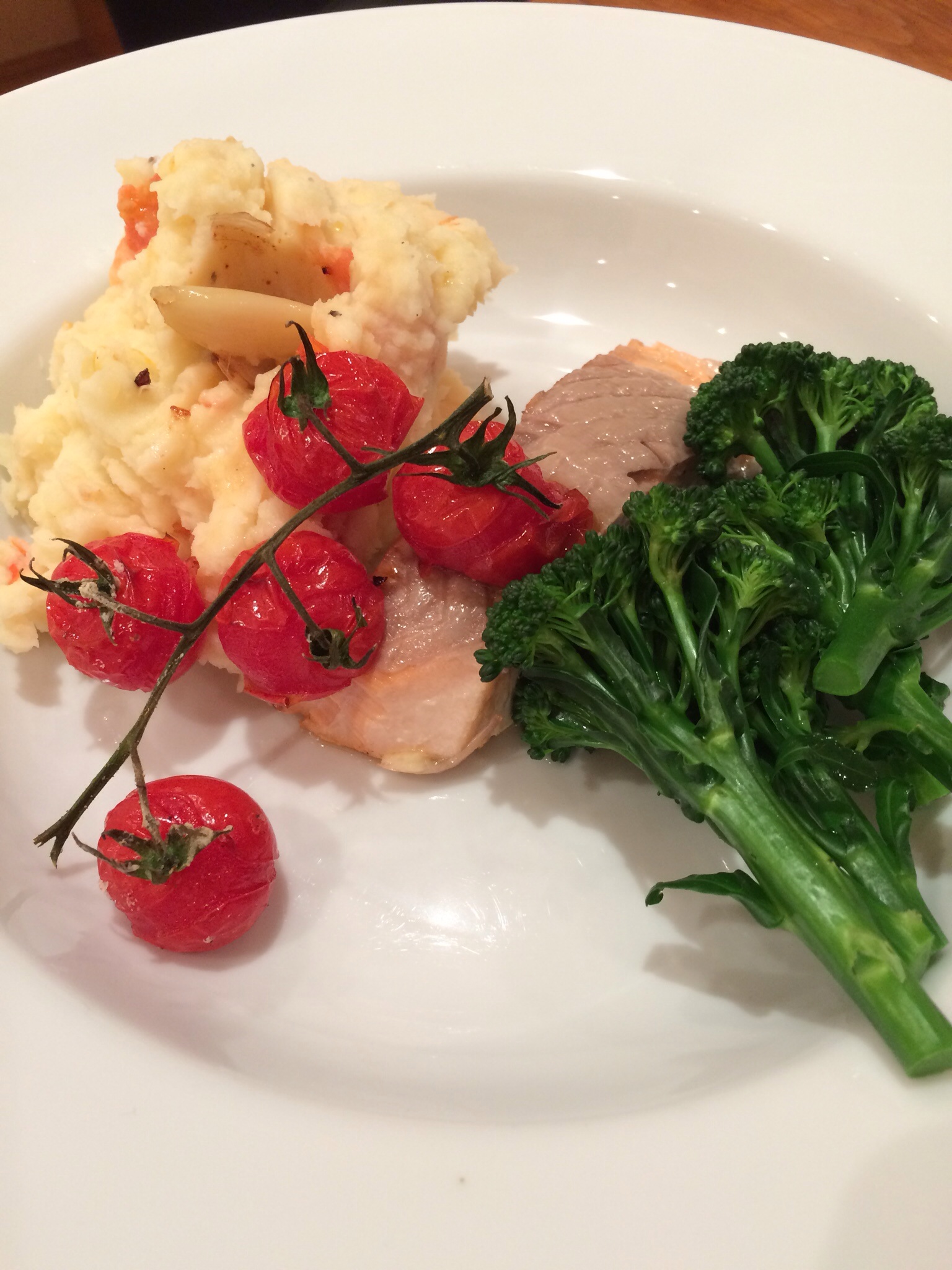 Delicious roasted salmon and tomato mash